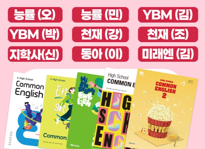 능률(오선영) | 능률(민병천) | YBM(박준언) | YBM(김은형) | 천재(강상구) | 천재(조수경) | 동아(이병민)|미래엔(김성연)|지학사(신상근)