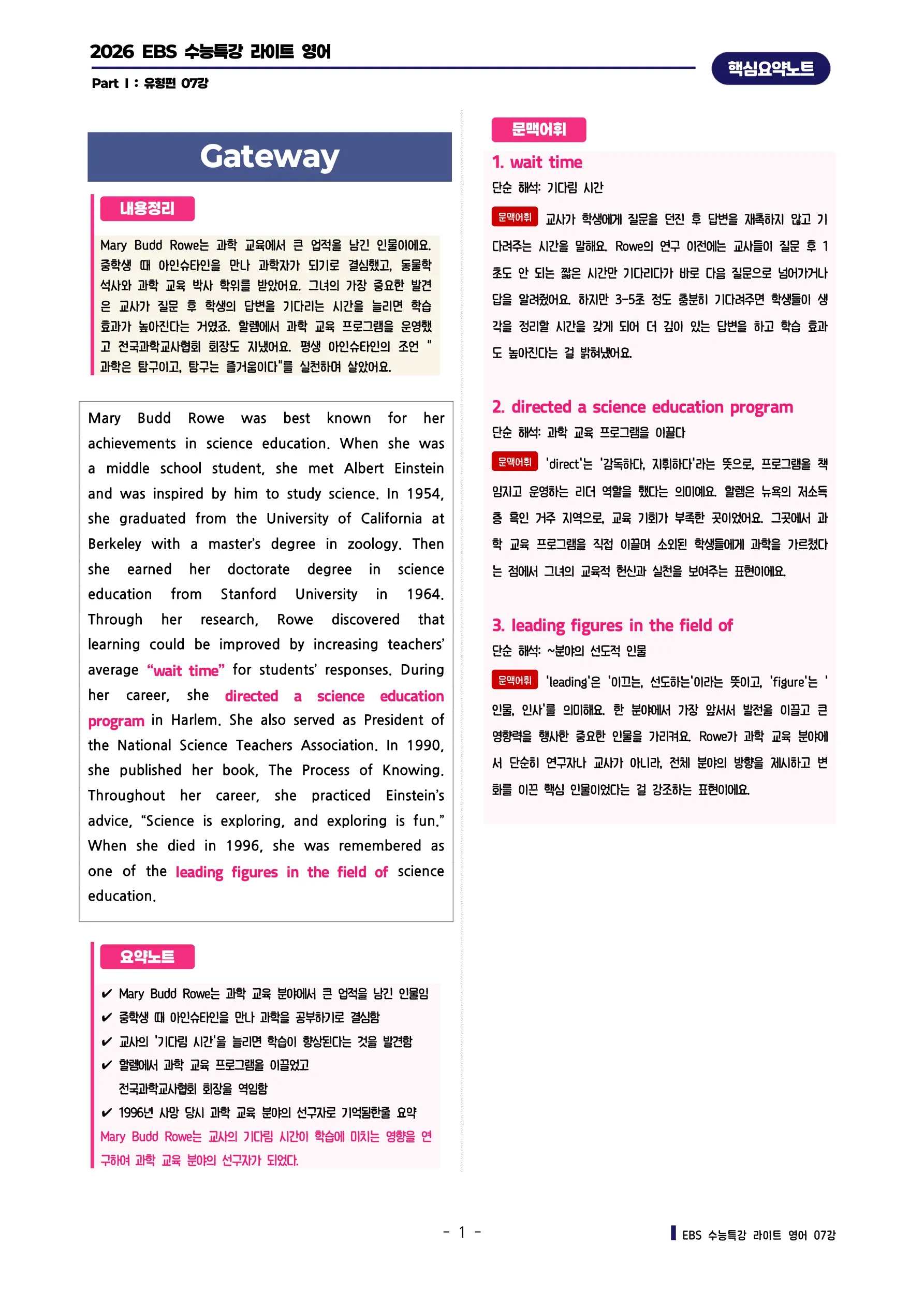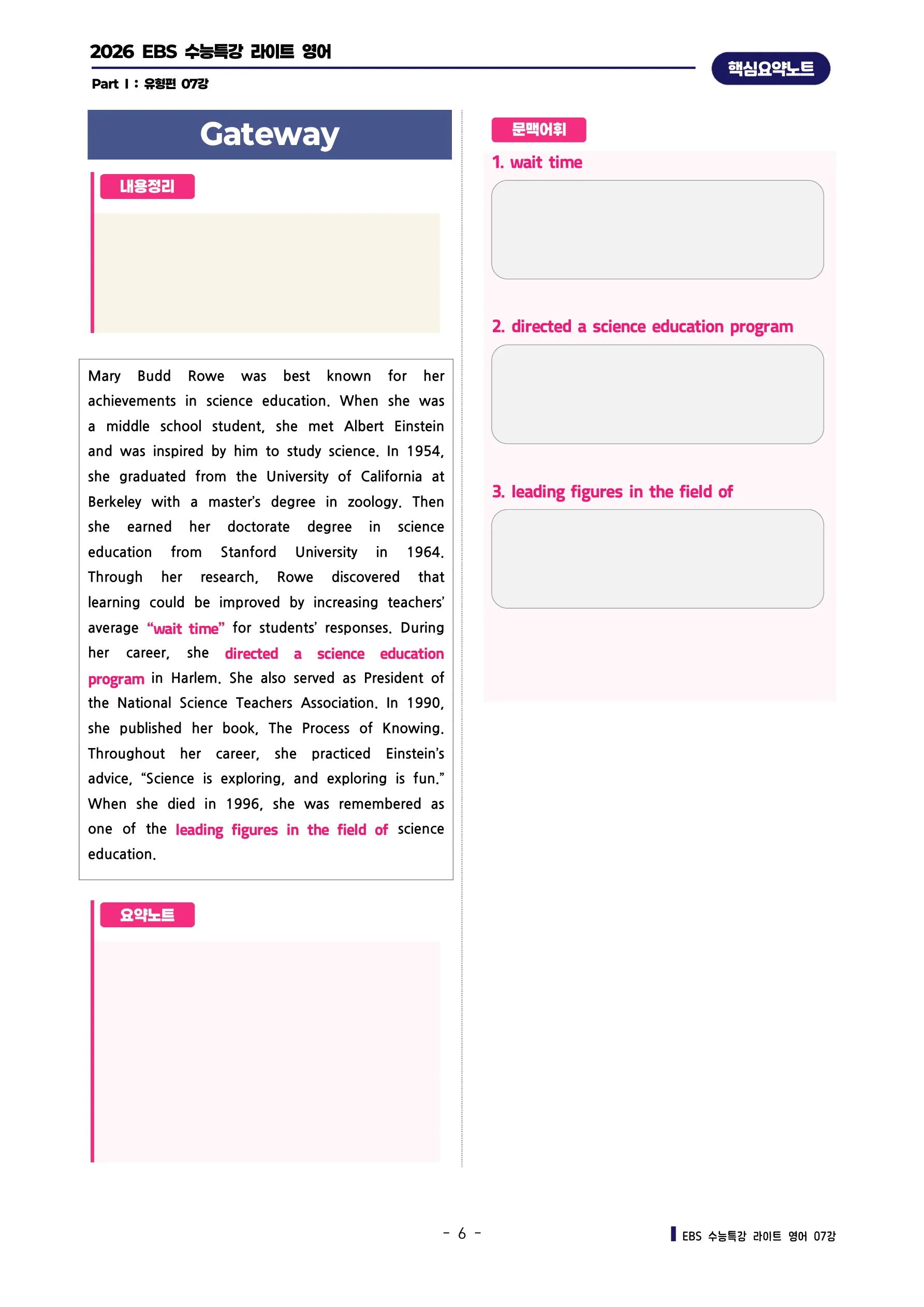 각 지문별 복습노트가 함께 들어있어서 키워드별 빈칸에 채워넣으면서 내용을 복습할 수 있어요!