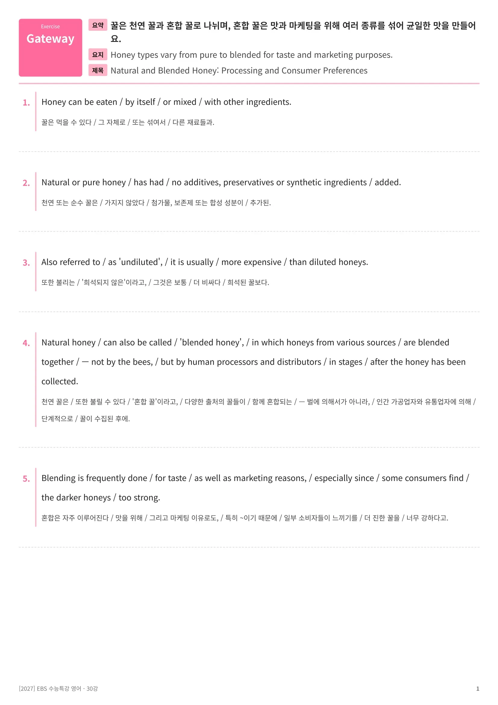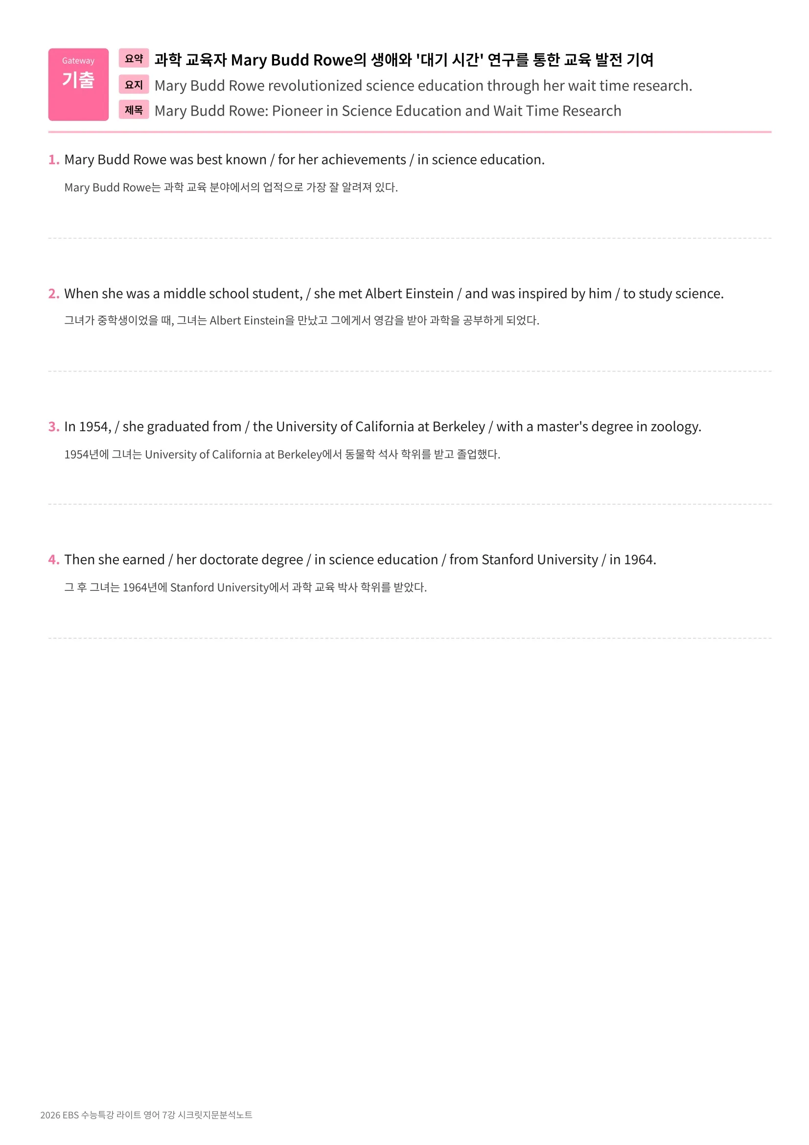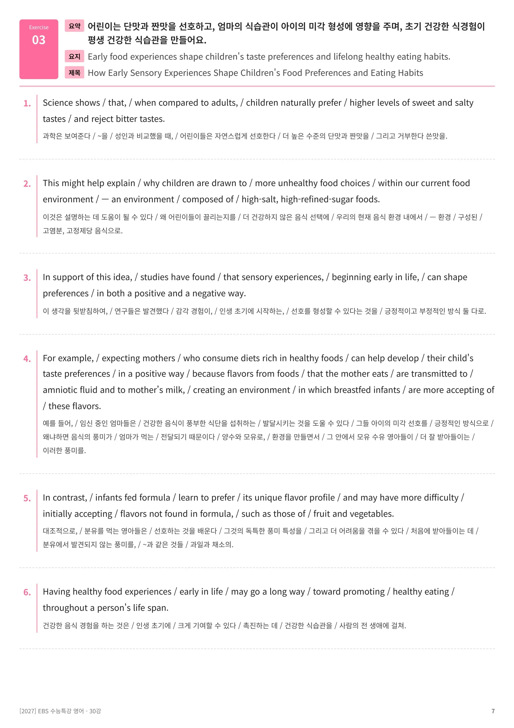 [추가 증정자료# 3] 한줄해석 + 영문배열 워크시트 [구매하신 패키지 교재의 전범위]