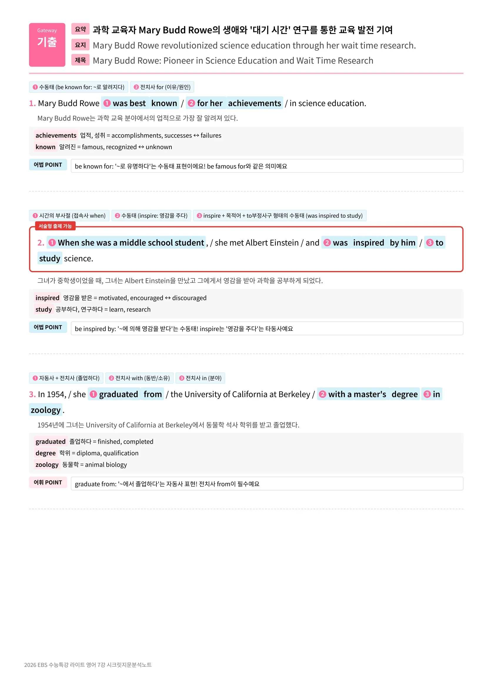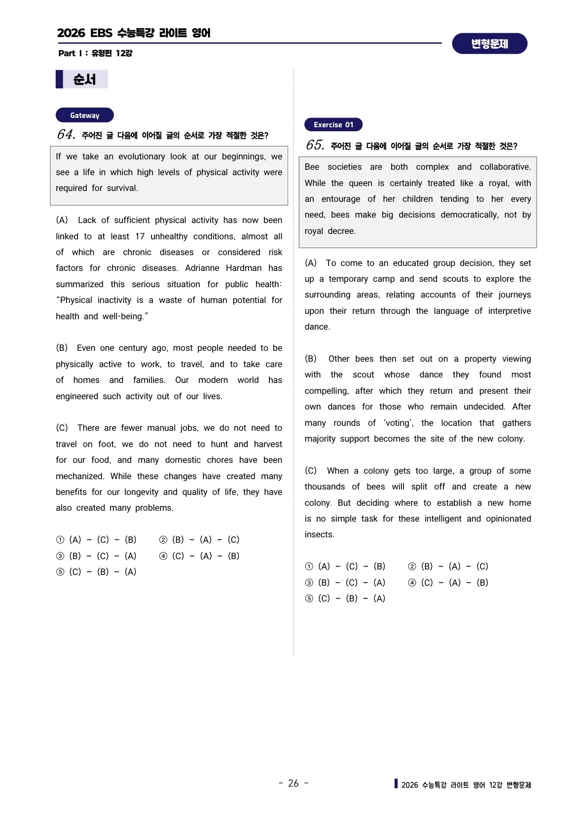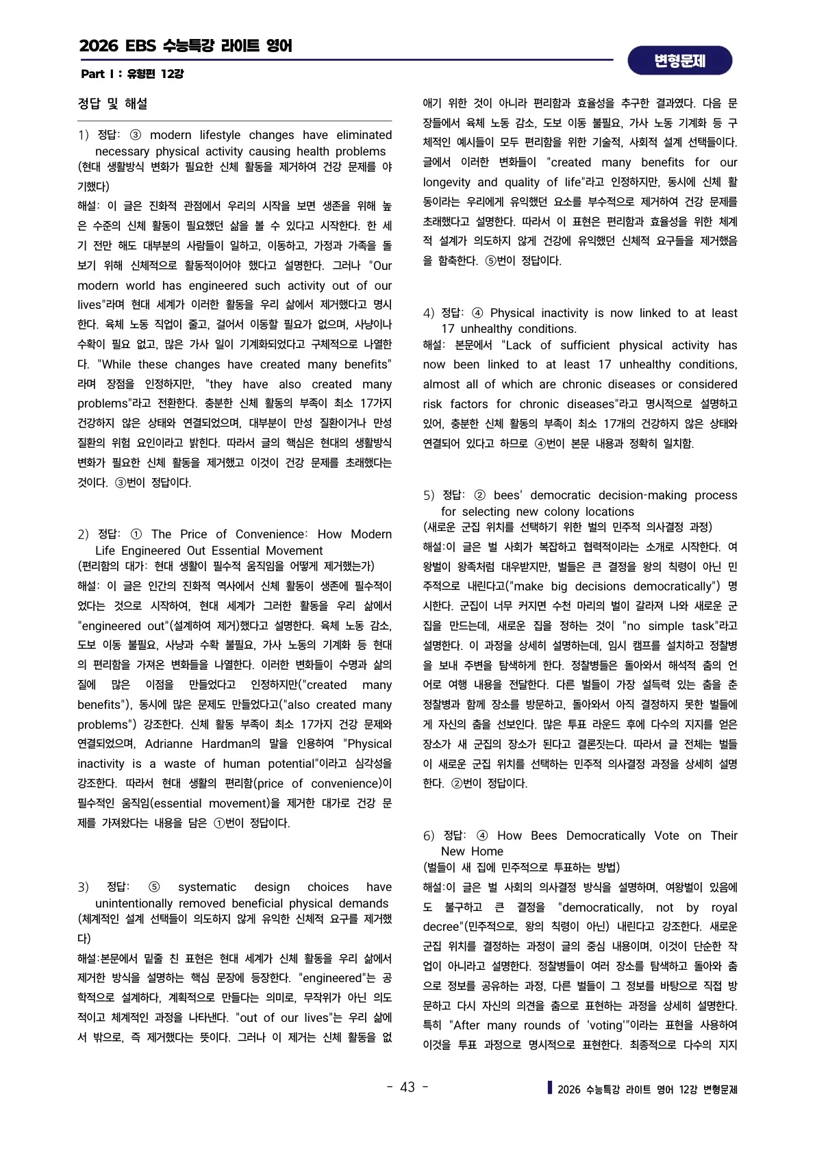 [추가 증정자료# 3] 한줄해석 + 영문배열 워크시트 [구매하신 패키지 교재의 전범위]