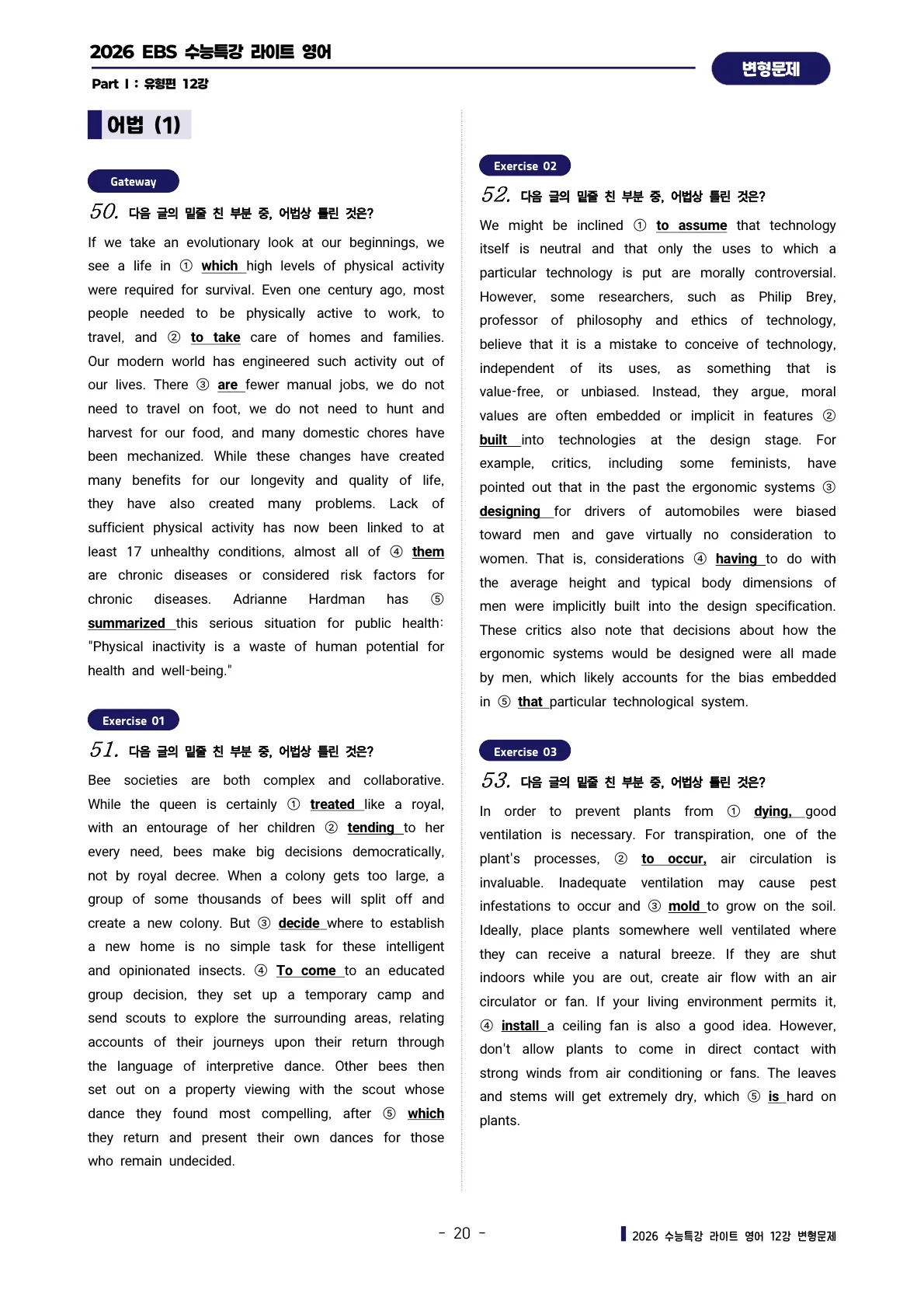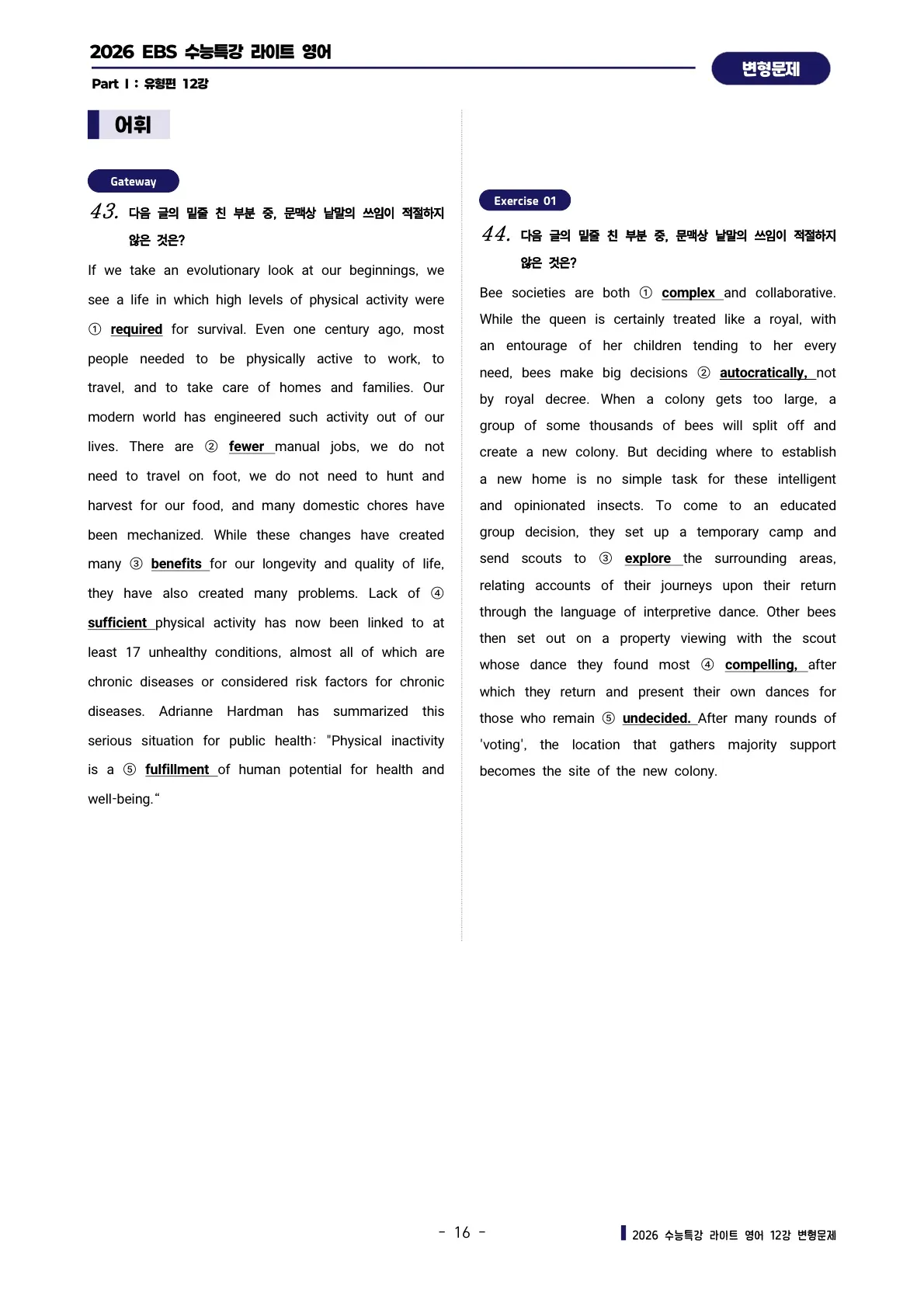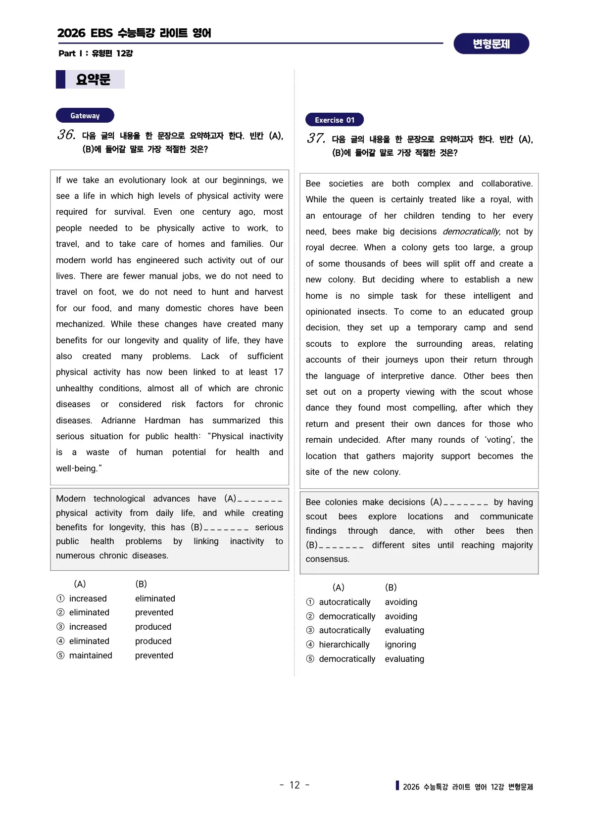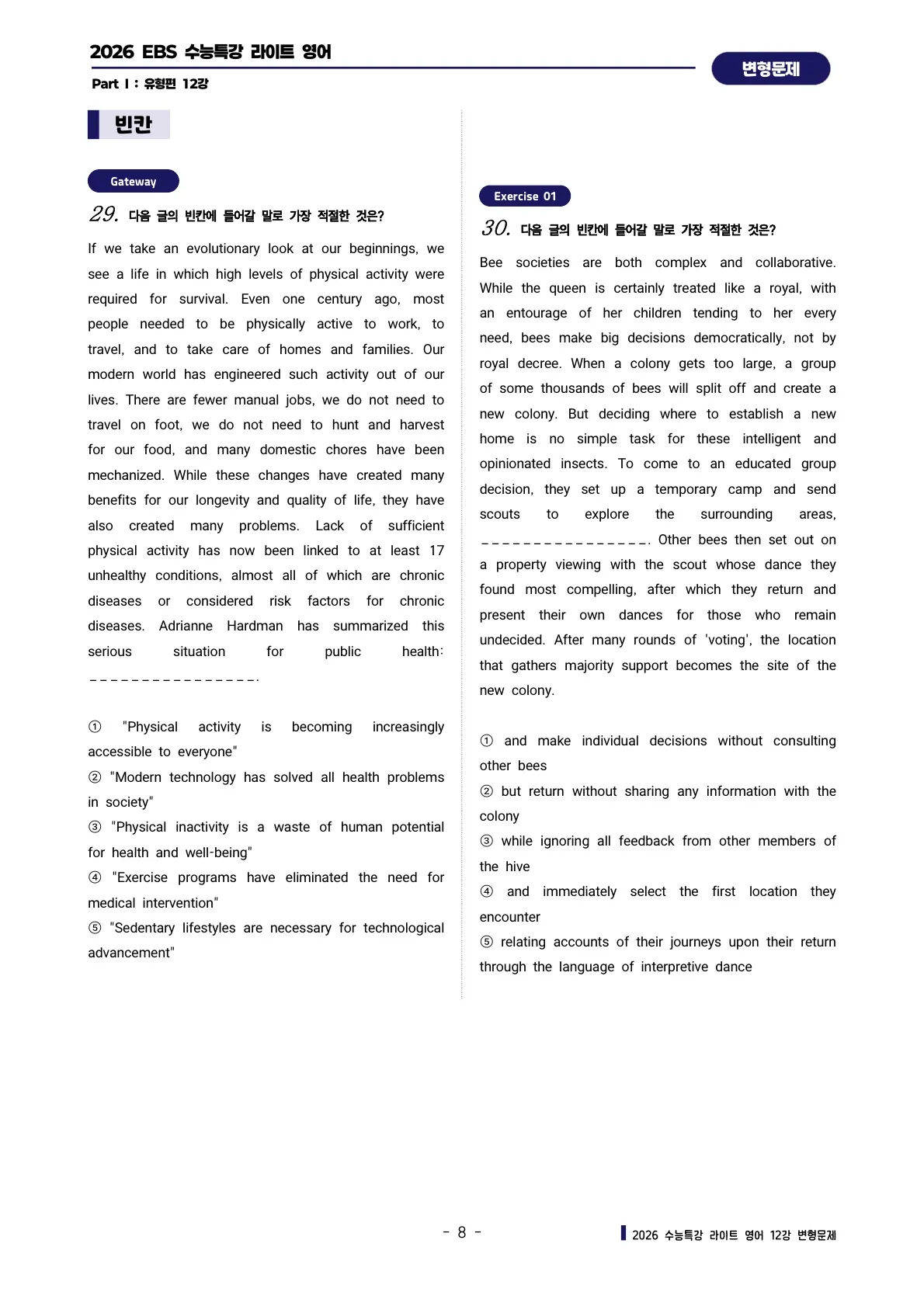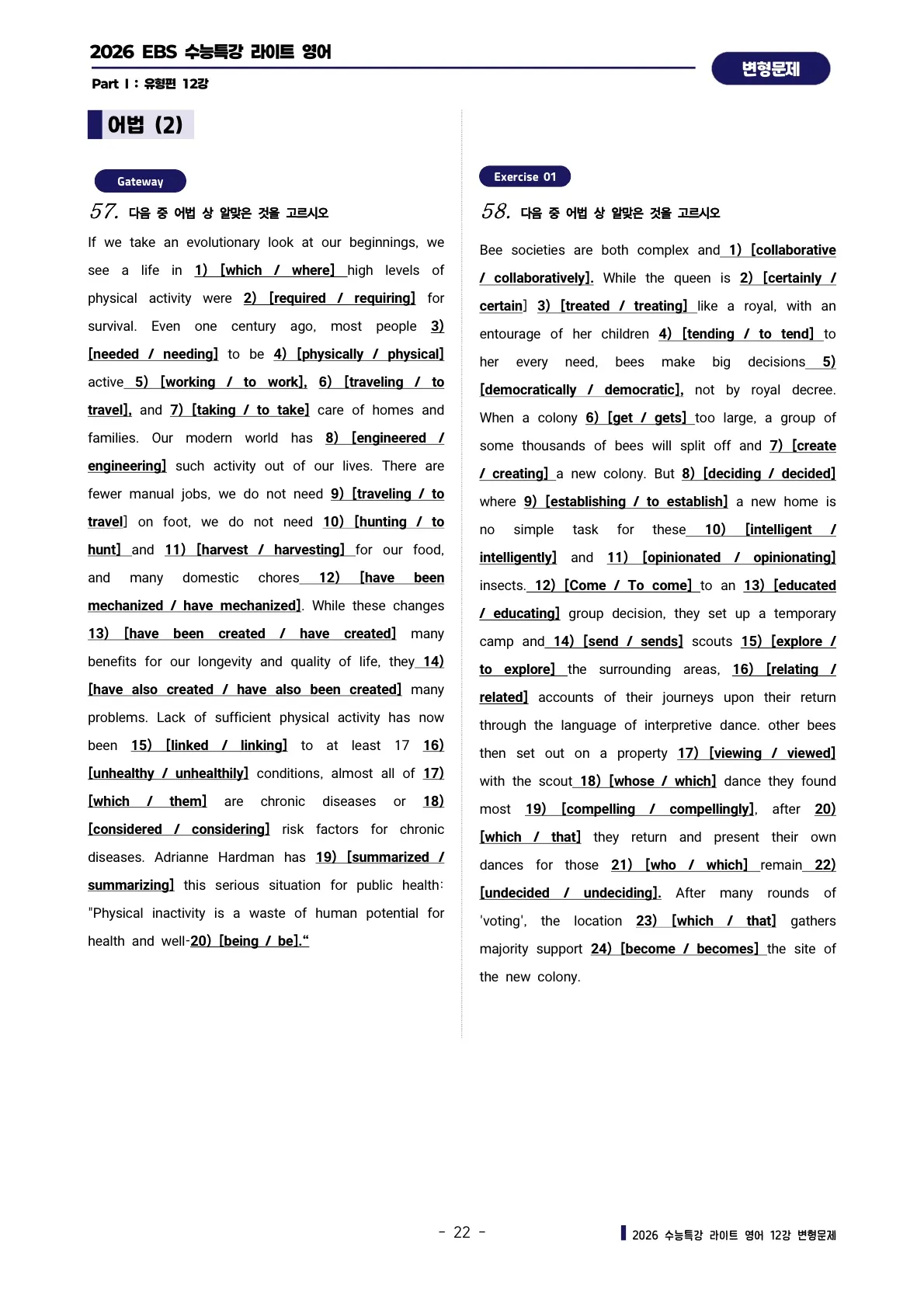 파이널 체크 : 빈칸 채우기 & 어법 양자택일 연습문제
