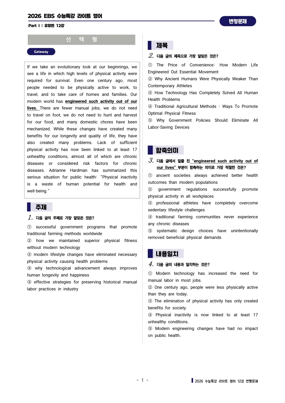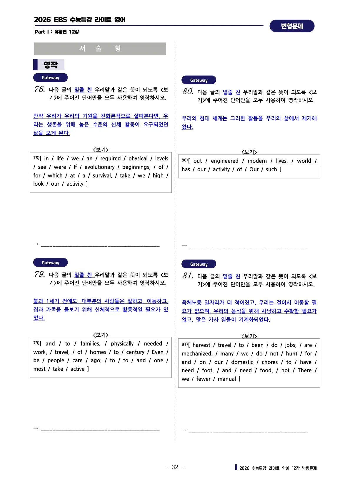 EBS 수능특강 Light 영어 전범위 "한줄해석 + 영문배열" 워크시트"
