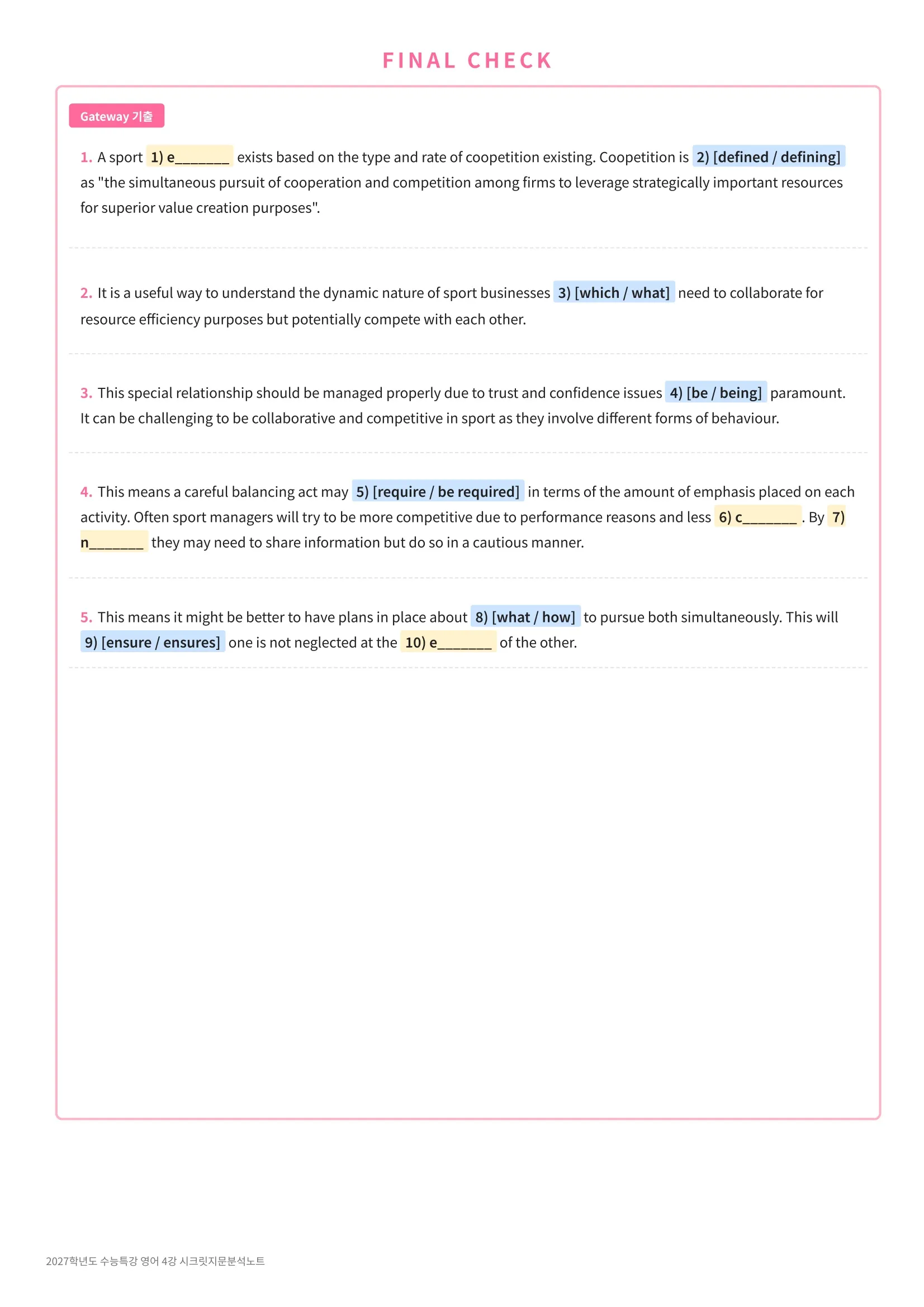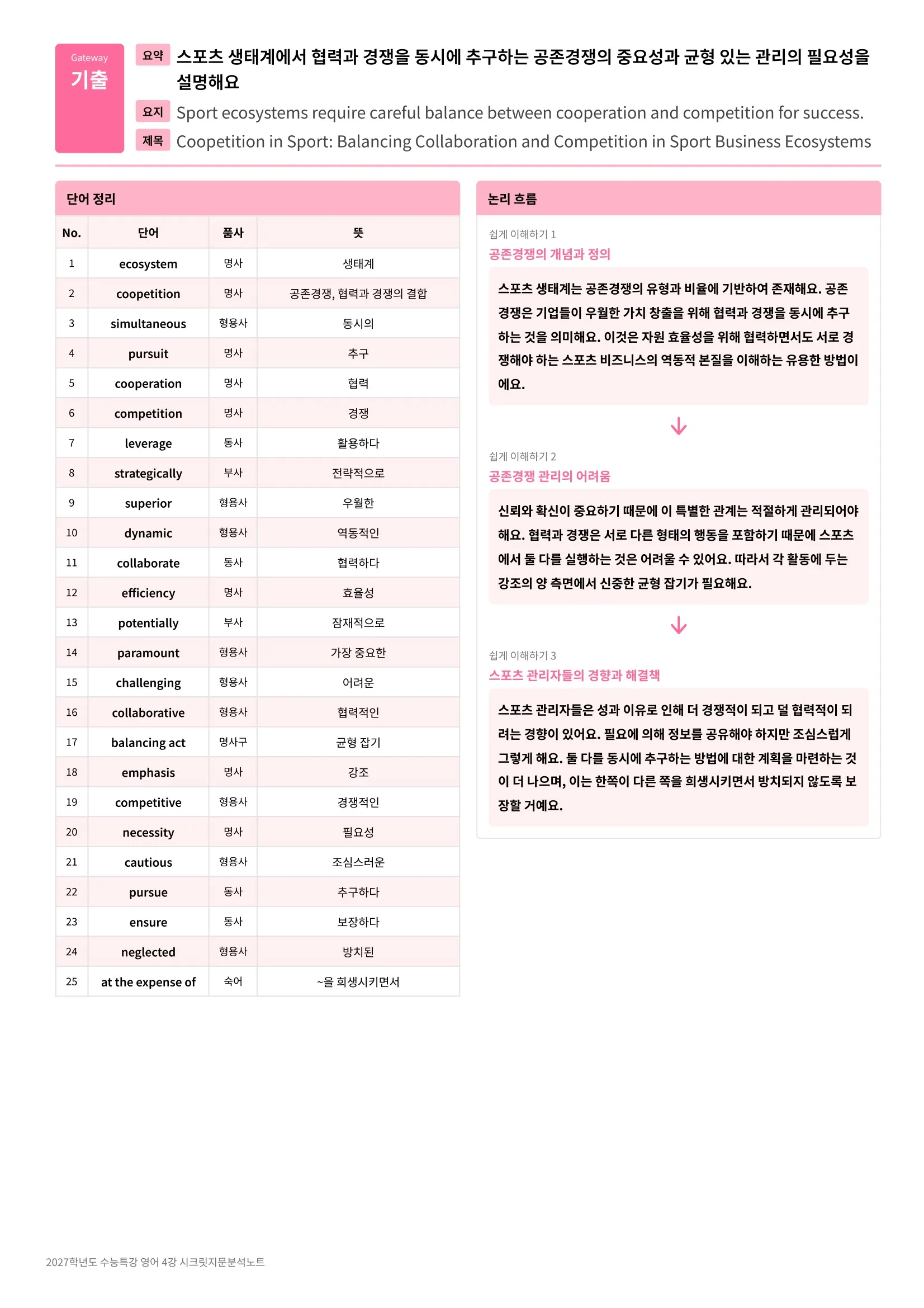 ์์ ์ฉ/ํ๊ธฐ์ฉ ์๋ฃ + ์ง๋ฌธ๋ณ ๋ ผ๋ฆฌํ๋ฆ ์ ๋ฆฌ + ์์ธ ๋ถ์ + FINAL CHECK + ๋จ์ด์ฅ + ๋จ์ด TEST ๋ก ๊ตฌ์ฑ๋์ด ์์ด์.