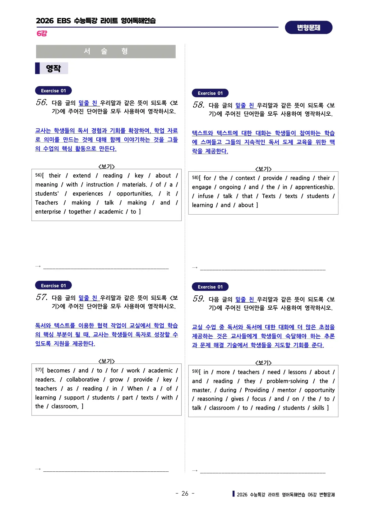 [추가 증정자료# 3] 한줄해석 + 영문배열 워크시트 [구매하신 패키지 교재의 전범위]