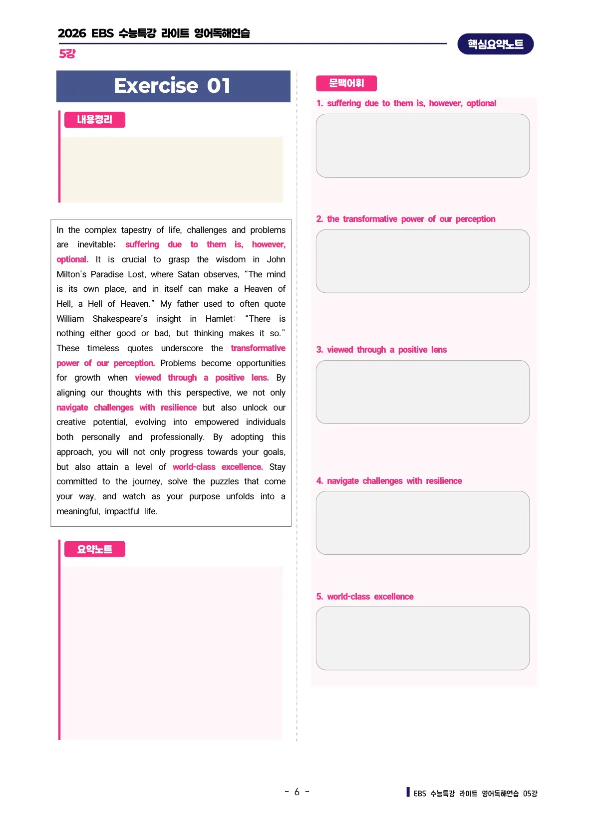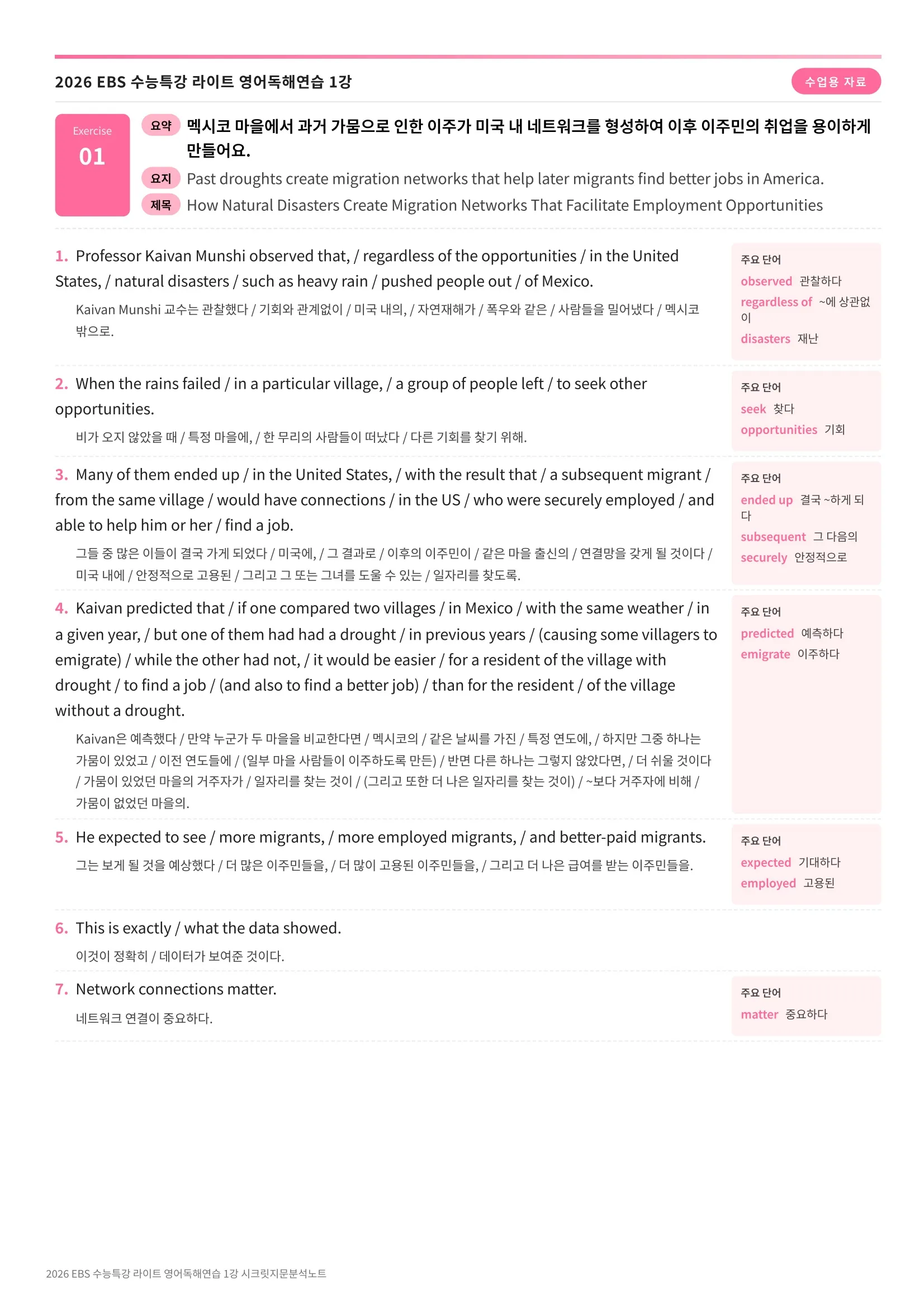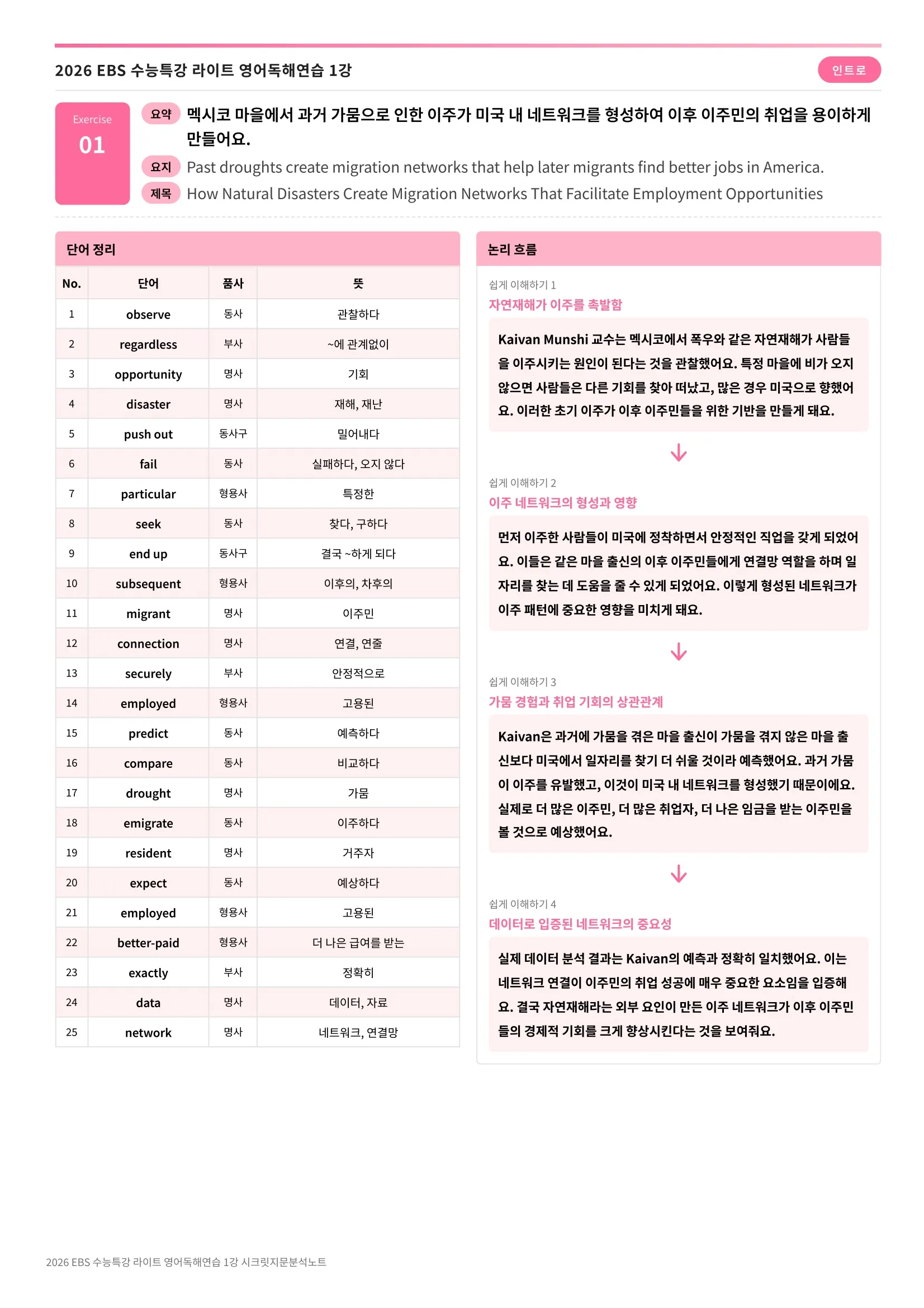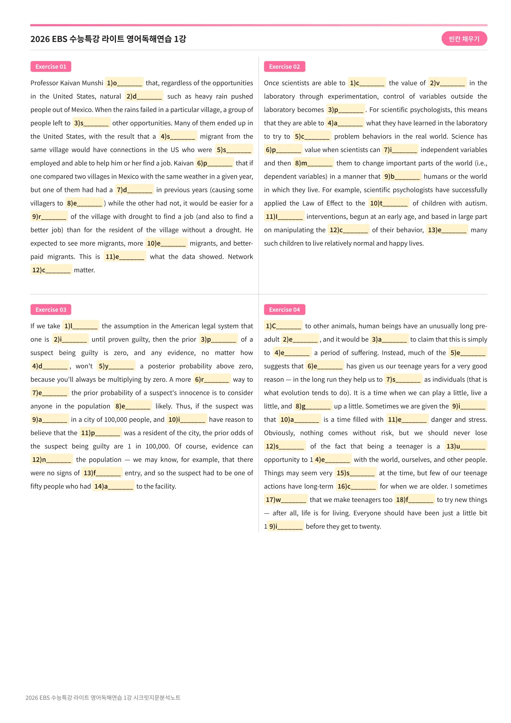 EBS 수능특강 Light 영어독해연습 전범위 "한줄해석 + 영문배열" 워크시트"