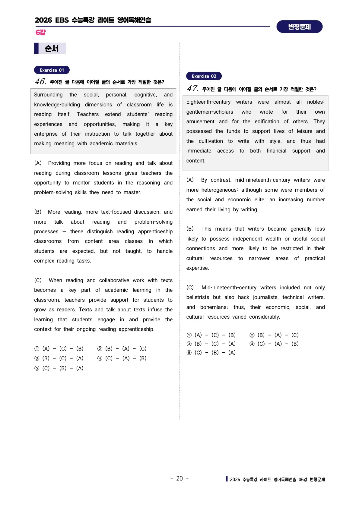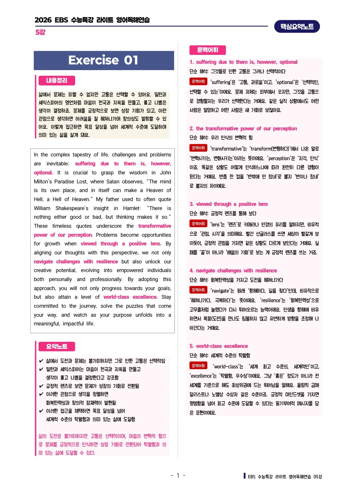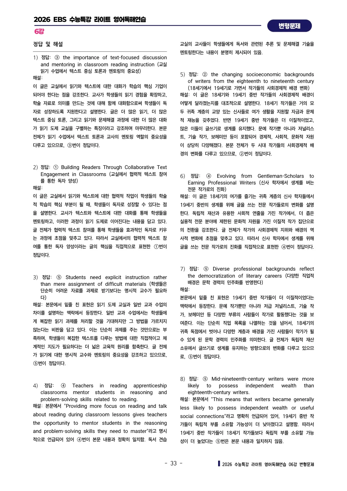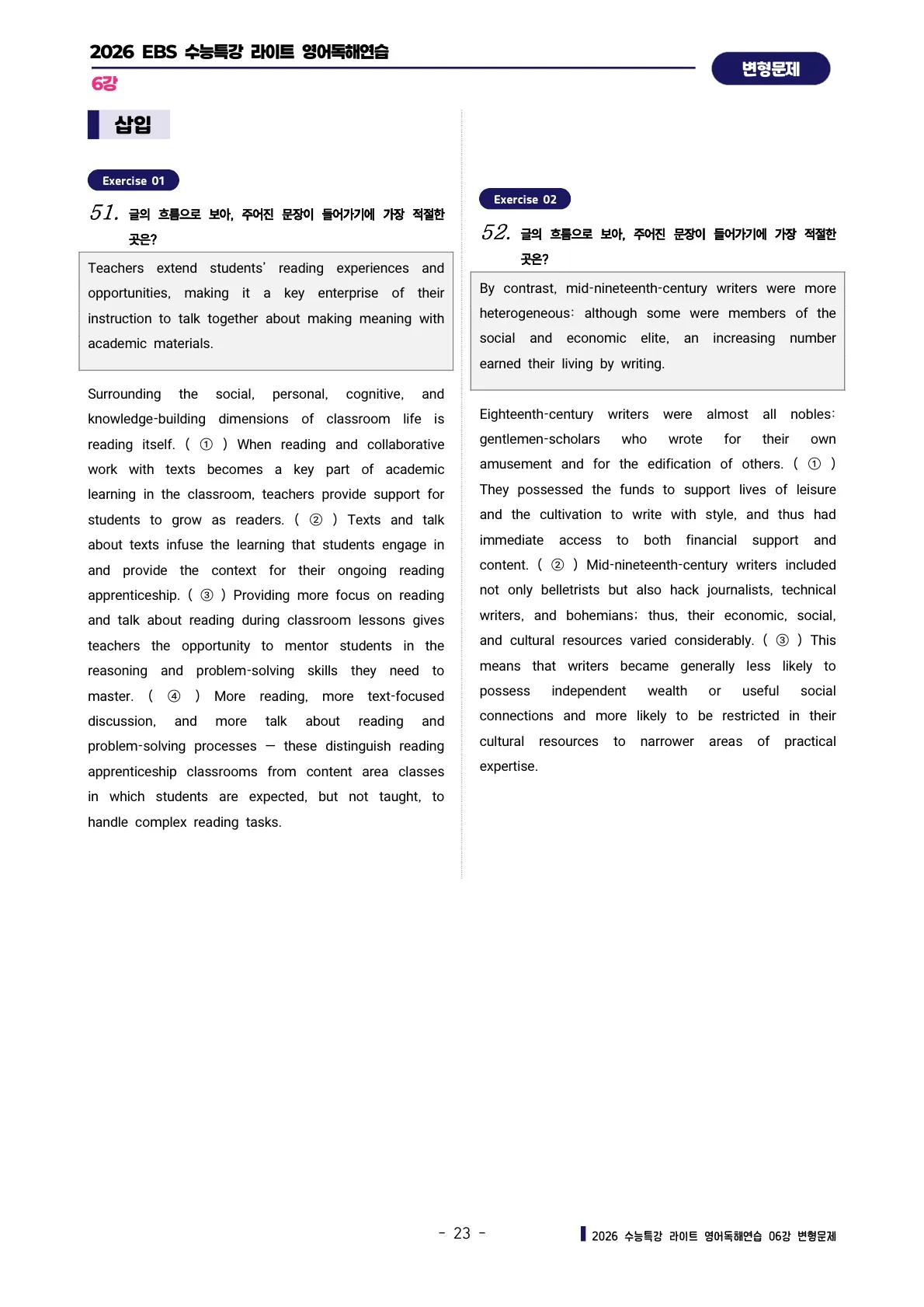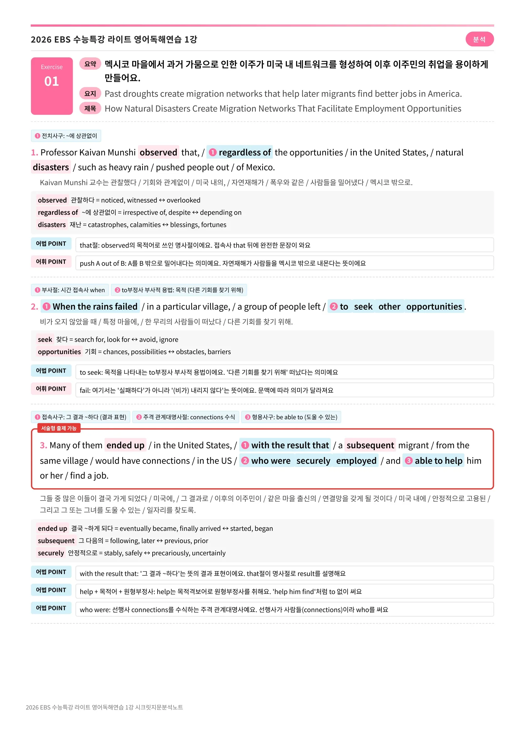 EBS 수능특강 Light 영어독해연습 전범위 "한줄해석 + 영문배열" 워크시트"