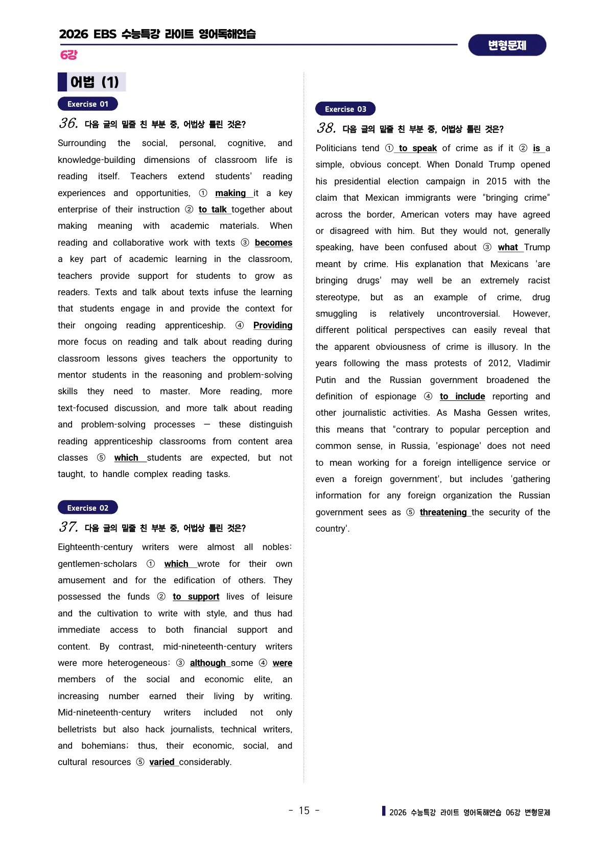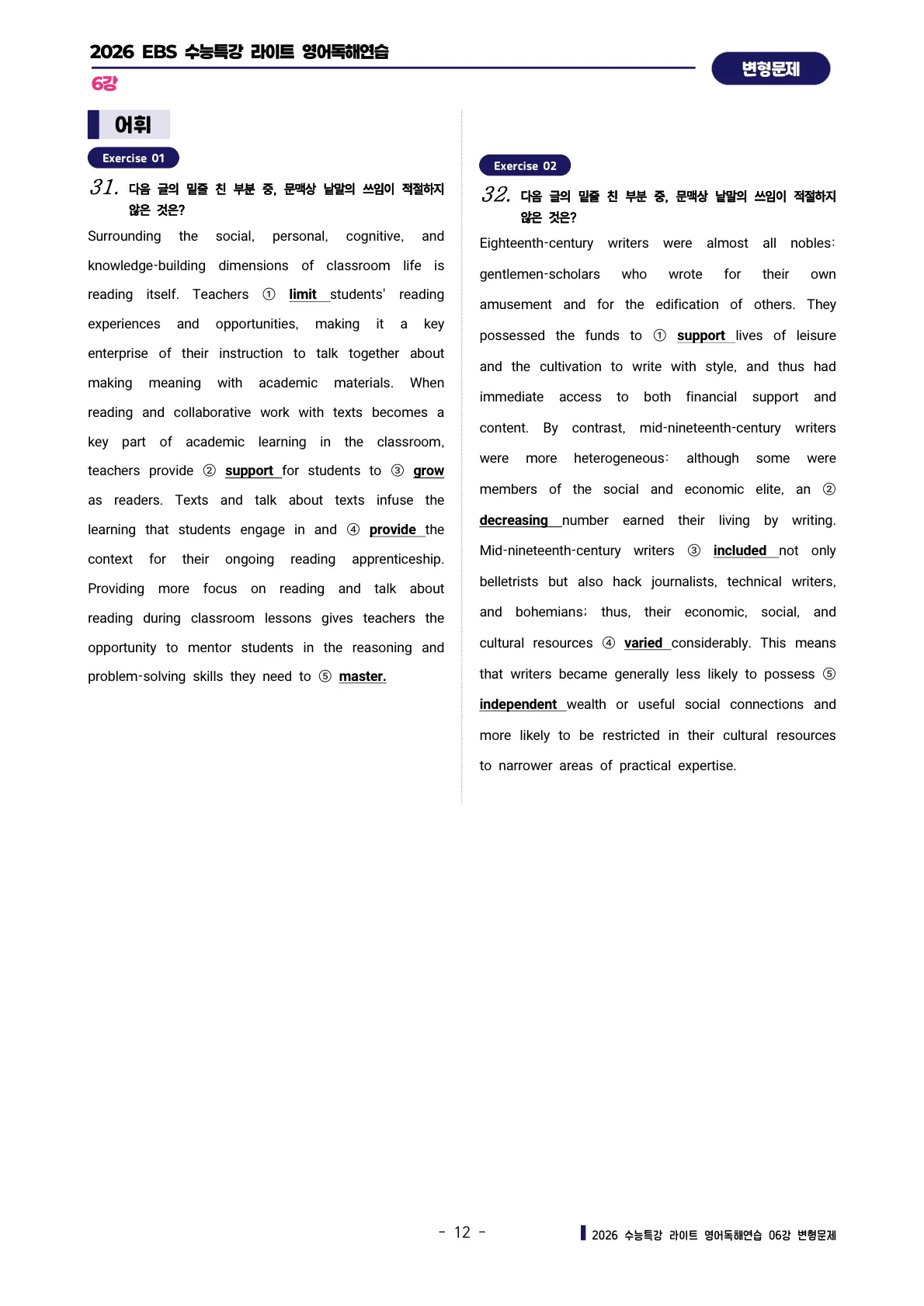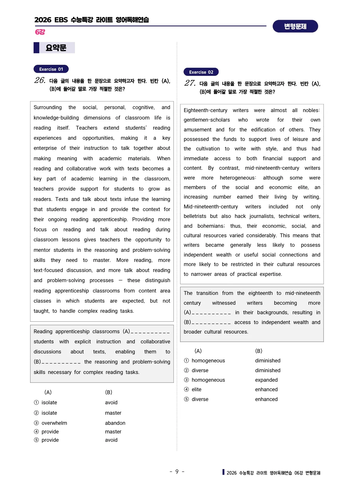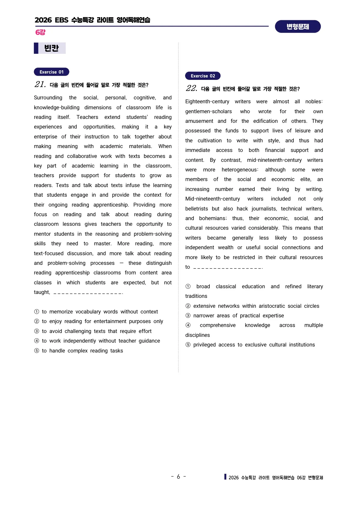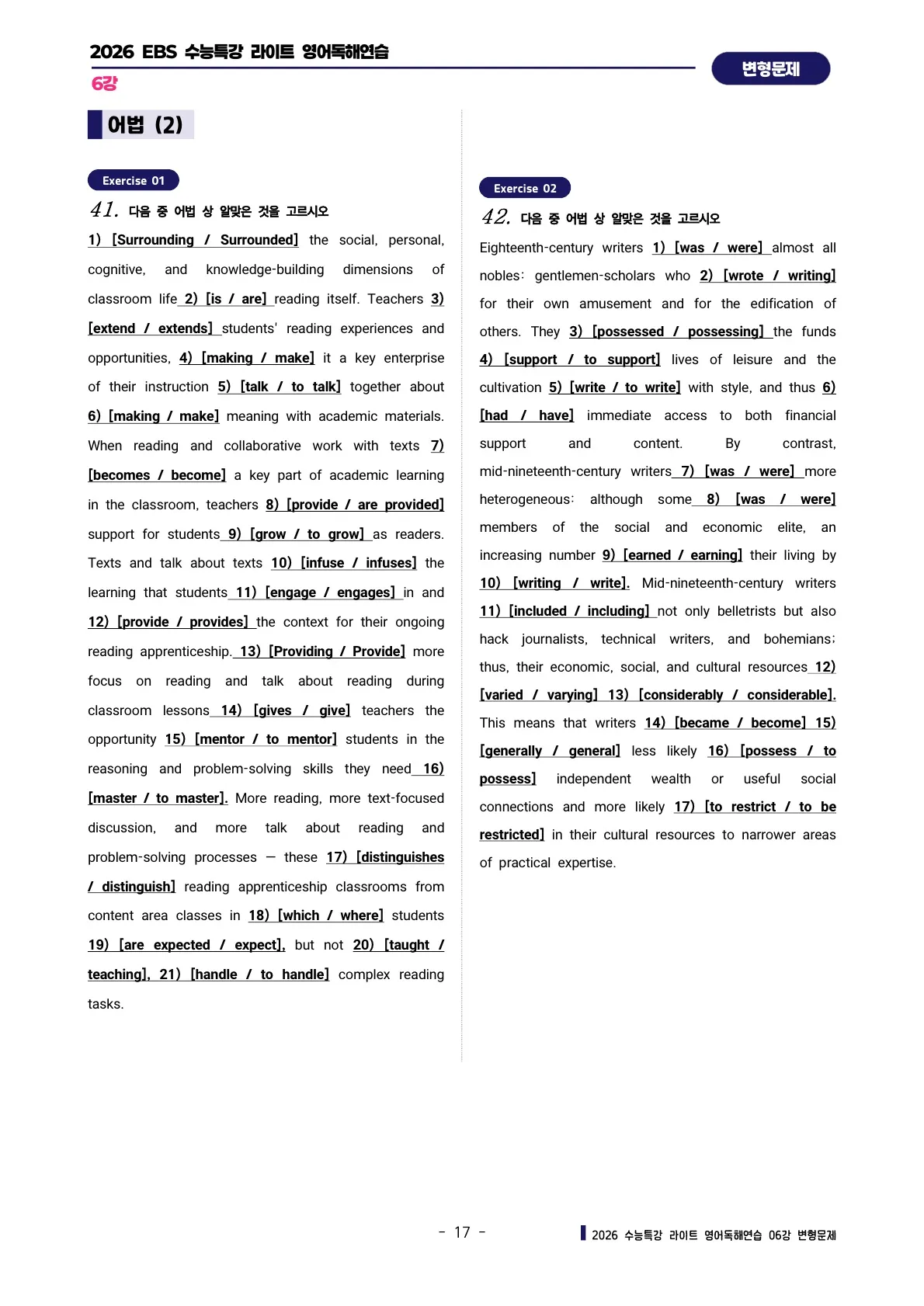 파이널 체크 : 빈칸 채우기 & 어법 양자택일 연습문제