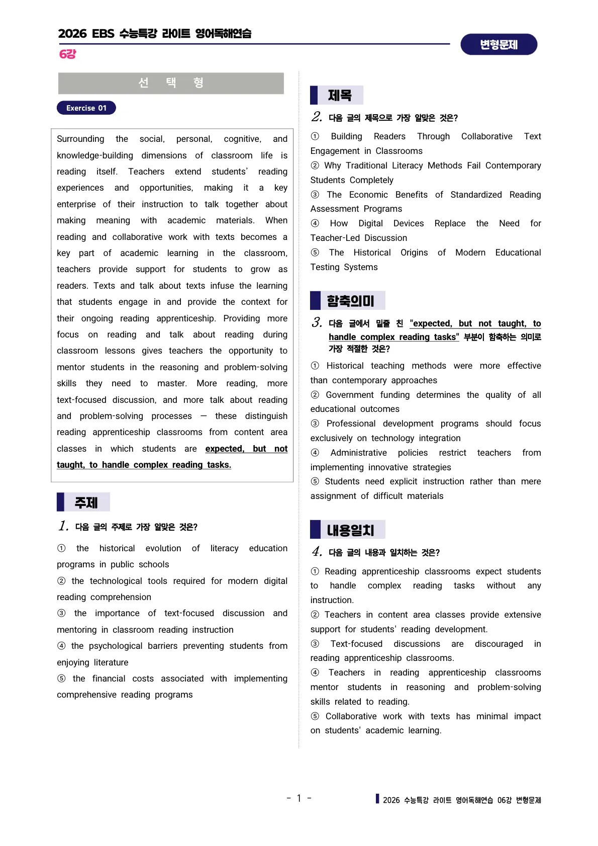 EBS 수능특강 Light 영어독해연습 전범위 "수업용 자료"